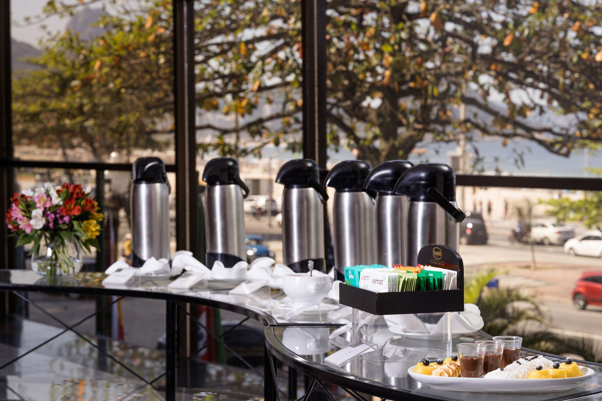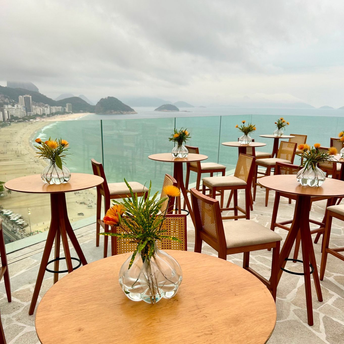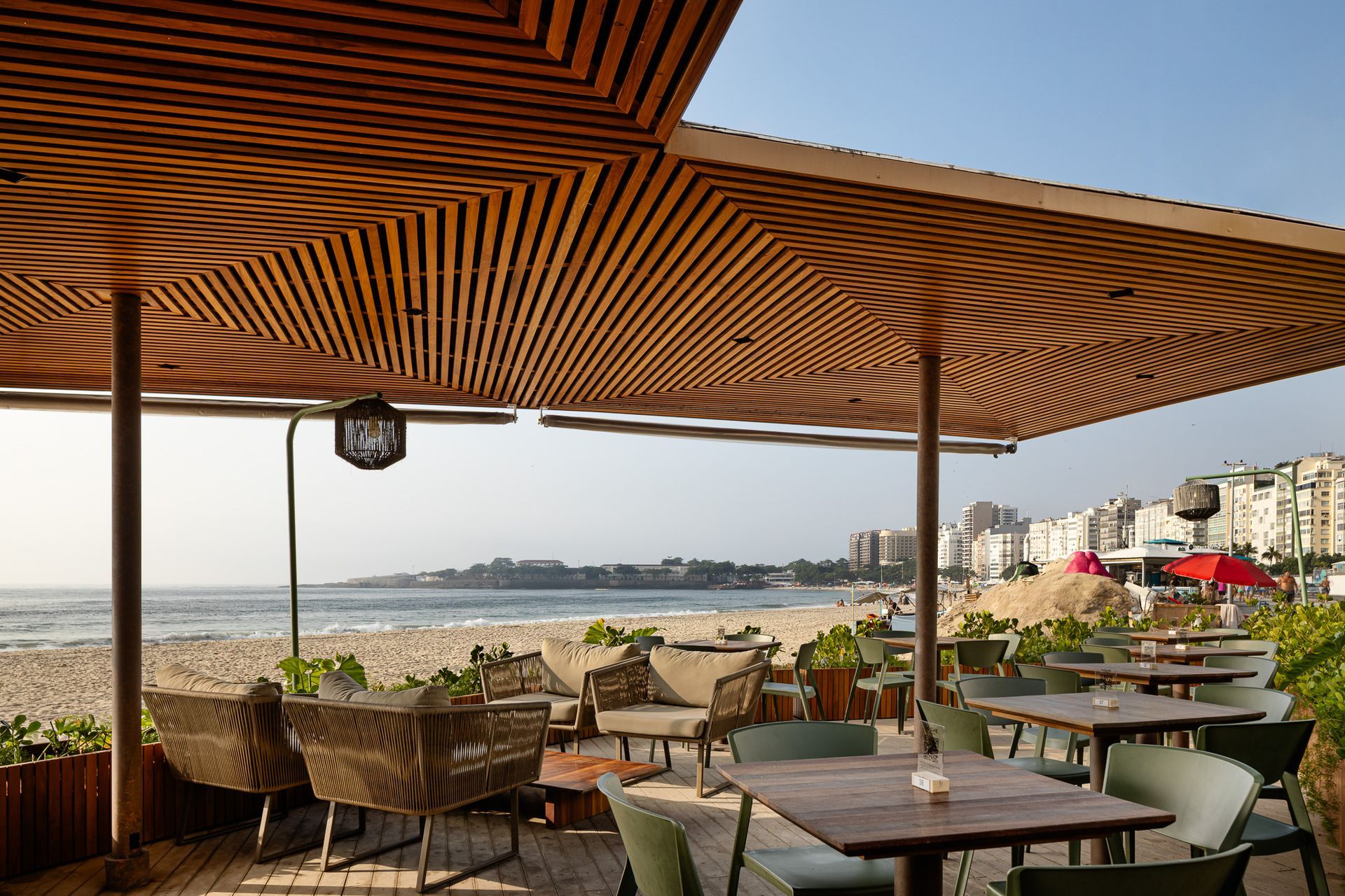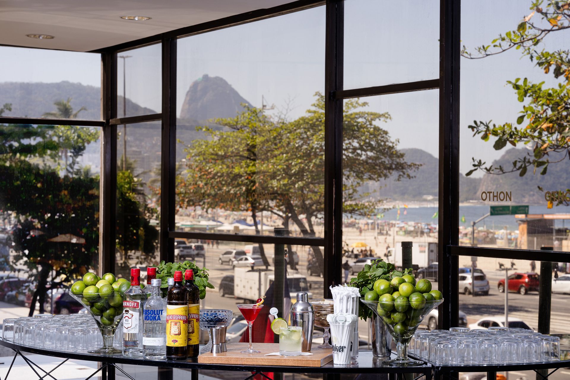 Un entorno con vista privilegiada, en primera línea de playa de Copacabana, con bar y cocina completa.